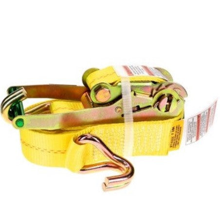 SKU 24-95015Retractable ratchet tie down strap with a flip-style retractor, in pack of 2. Length: 15' (4.57 m) Width: 1" (2.5 cm) Breaking strength...