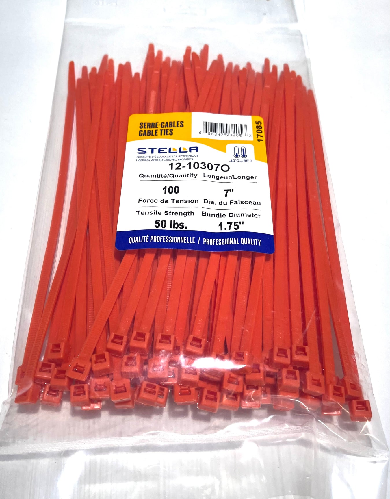 Connectez-vous pour voir le prix 100 orange cable ties 11'' long that can support a load of 50 lbs